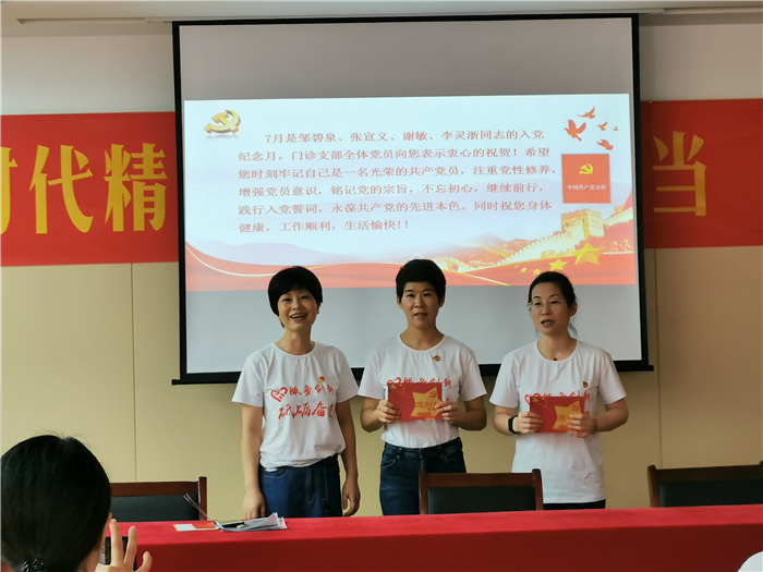 7月份是党员邹碧泉、谢敏同志的政治生日月,支部书记戴清辉为她们颁发生日贺卡,希望她们牢记自己是一名光荣的共产党员,注重党性修养,增强党员意识,铭记党的宗旨,不忘初心。 组织委员邹碧泉同志带领全体党员诵读党章。