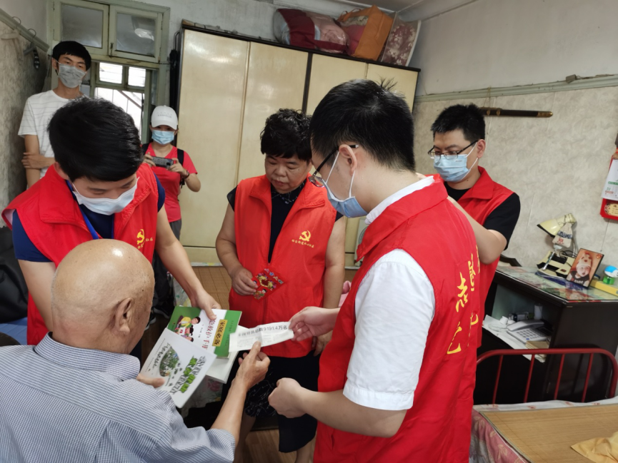 7月8日下午,51吃瓜网 门诊党支部志愿者们在组织委员邹碧泉同志的带领下走访慰问了水心社区退休老党员,为其家庭送去组织的关怀、节日的问候、夏令用品、预防新冠香囊、口罩及《习近平总书记系列讲话读本》等学习资料。