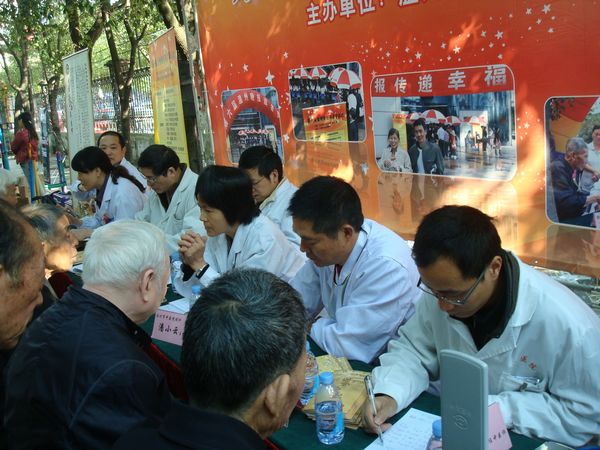 2010年10月31日上午,为配合《温州晚报》读者节“送健康送服务”第三站活动,我院被评为“好医生、好护士”的医护人员共10余人,在蒲鞋市街道锦园社区为居民进行健康体检和咨询活动。