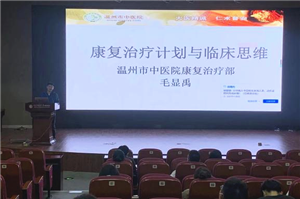 康复治疗部主任章国伟主持,温州市中医院康复科三区主任支英豪宣读温州市卫生健康委员会相关文件。