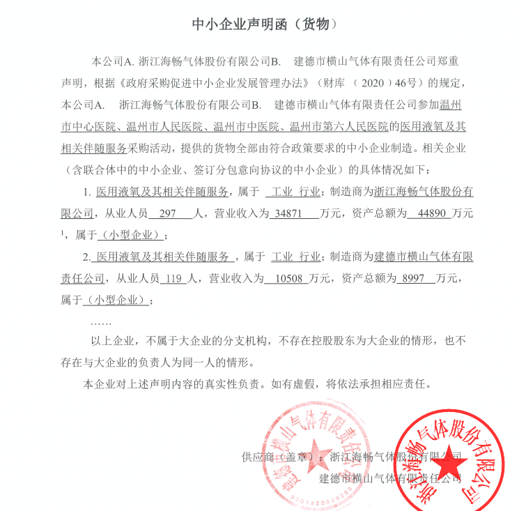 1 | 医用液氧及其相关伴随服务 | 1 | 项 | 1038 | 浙江海畅气体股份有限公司、 建德市横山气体有限责任公司(联合体) | 浙江省台州市临海市东渡南路755号(仅作办公使用)(自主申报) | 913310826831280375 |